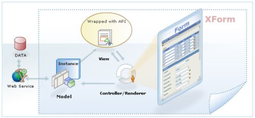 Each XForm can be associated with various models, views, and controls that define its behavior, appearance, and related Web service operations.